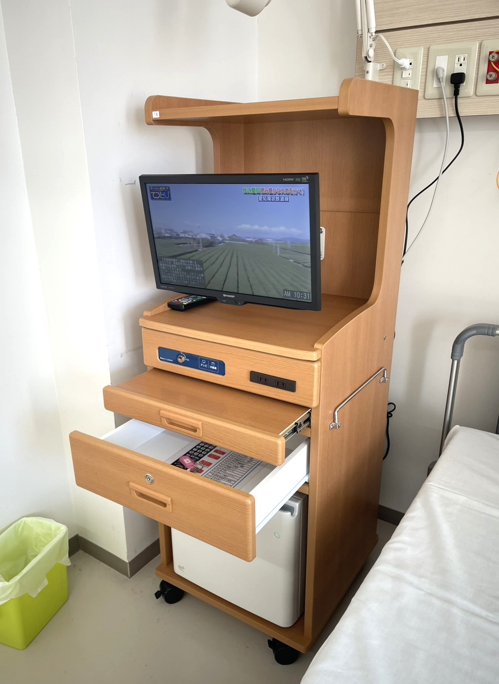 ミドルタイプの床頭台とロッカーを組み合わせた、病室向けの使いやすい収納セットです。床頭台にはテレビ、アーム、タイマー、鍵付き引き出し、スライドカウンターなど、患者様が日常的に利用する機能をコンパクトに集約。冷蔵庫の設置にも対応し、入院生活を快適にサポートします。ロッカーは可動棚とハンガーパイプを備え、衣類やリネン類を整理しやすい構造。どちらも耐久性と清掃性に優れた素材を採用し、衛生管理が求められる環境でも安心して使用できます。病室の限られたスペースでも効率よく収納を確保できる実用的な組み合わせです。